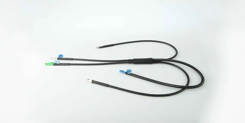 We manufactured a double bifurcated fibre optic assembly routing light from two different sources to two different spectrometers configured for different wavelength ranges (UV/VIS and VIS/NIR).